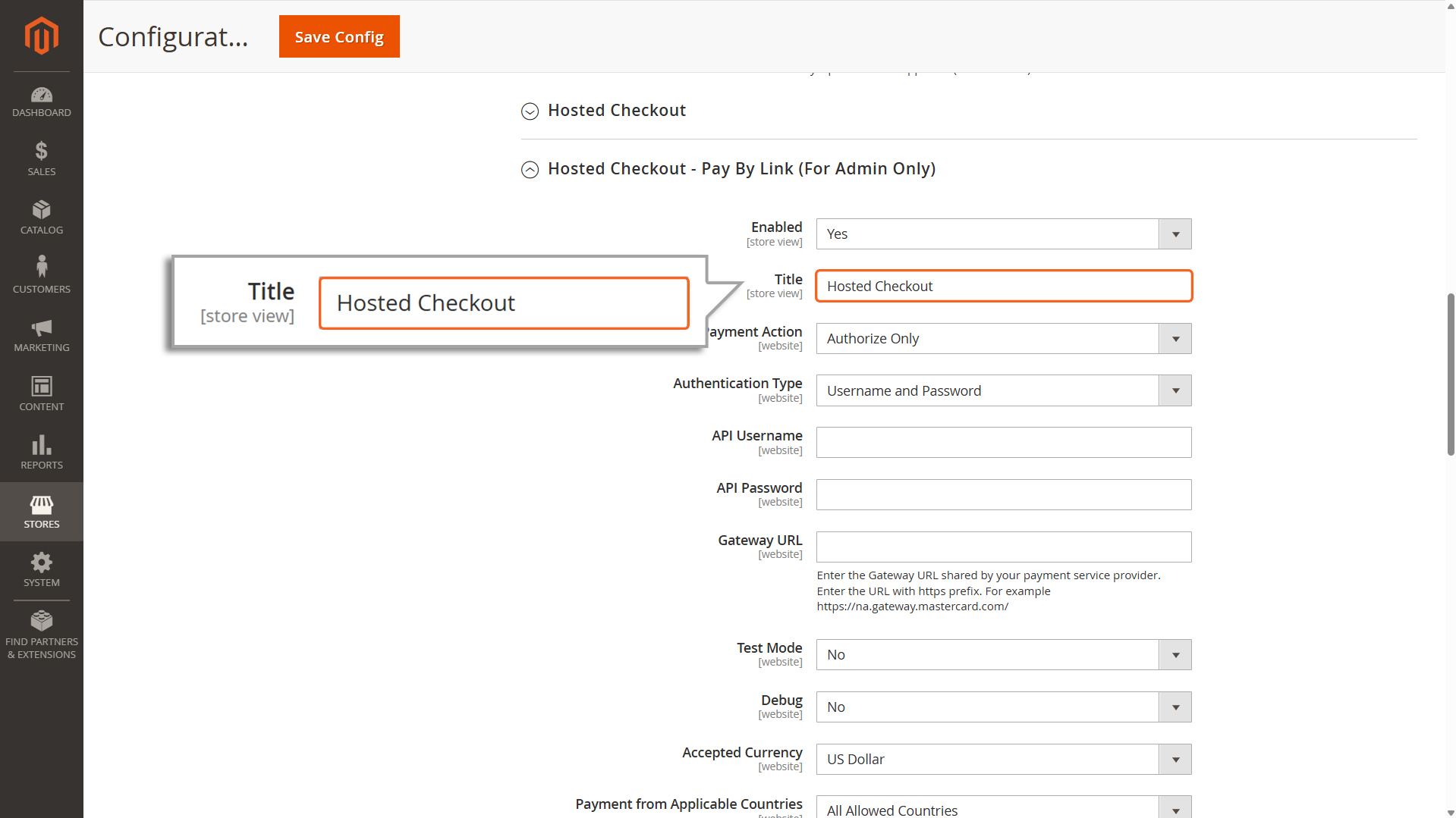 Open the dropdown menu and select “Yes” to enable the Hosted Checkout feature. This step activates the configuration needed for this payment option as well as enables the same in the checkout page.