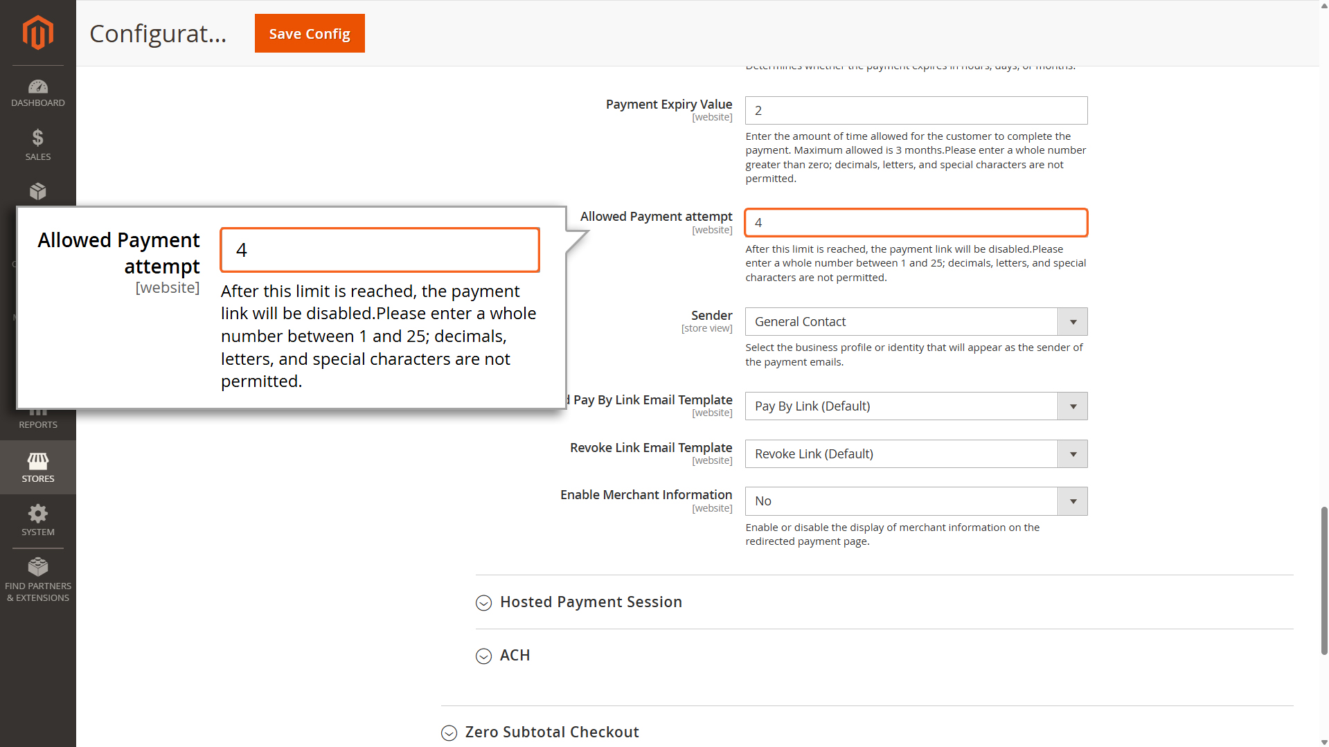 Allowed Payment Attempt : The maximum number of times a customer can try to pay before the link is disabled. Must be a whole number between 1 and 25