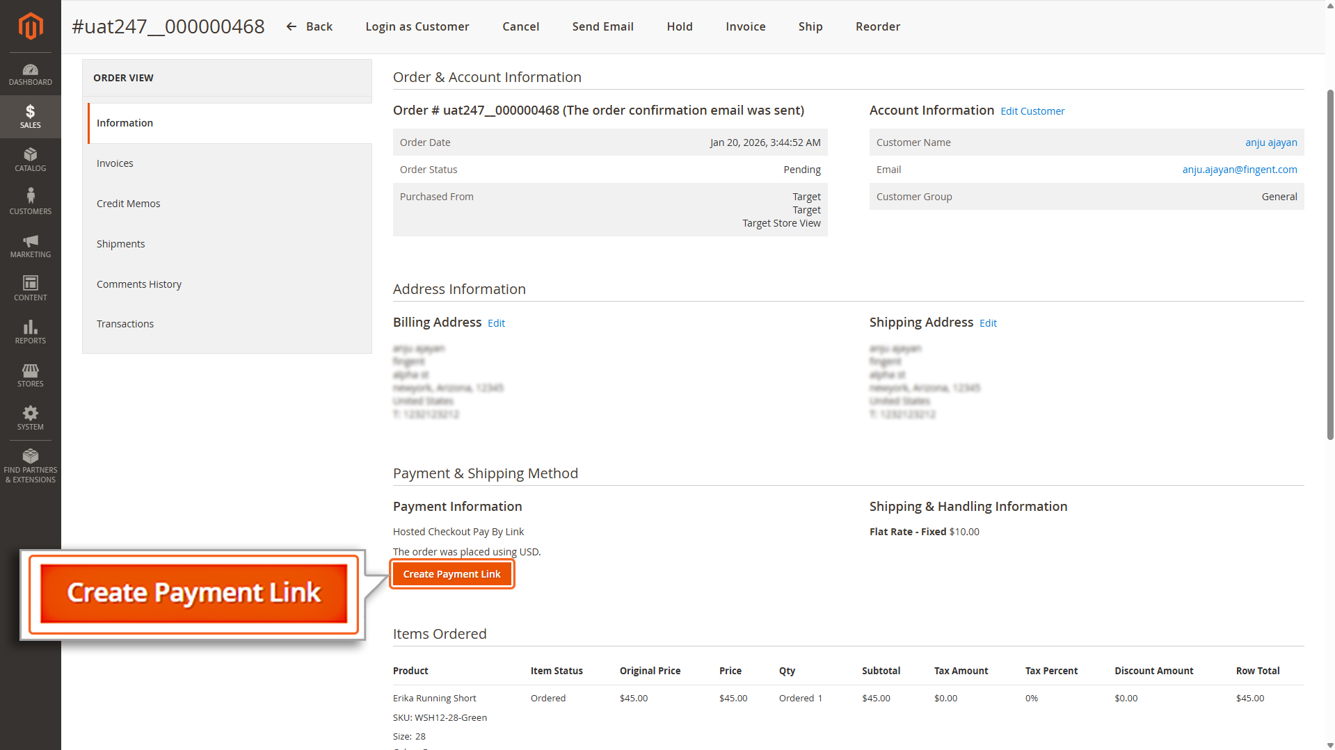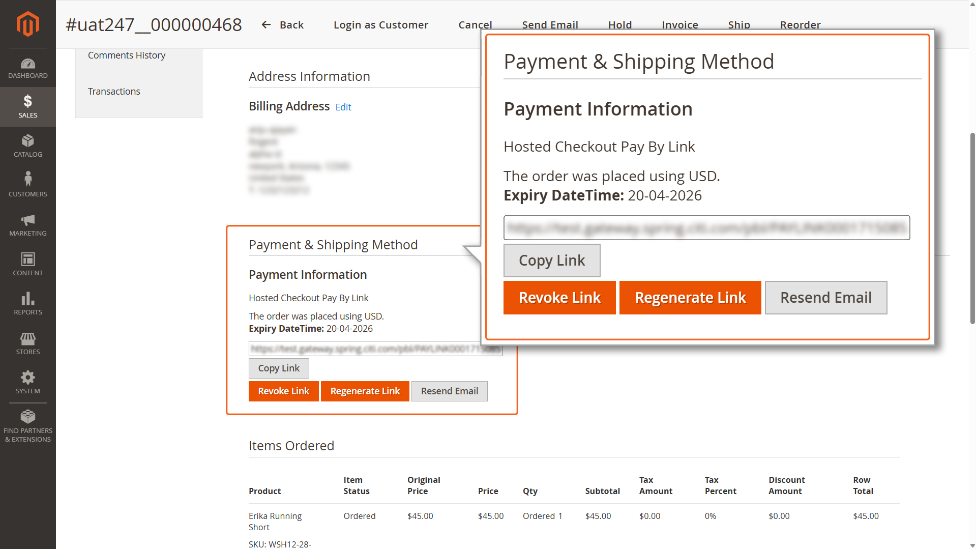 5. Finalize Order: Set the payment method to Pay by Link and submit the order form.