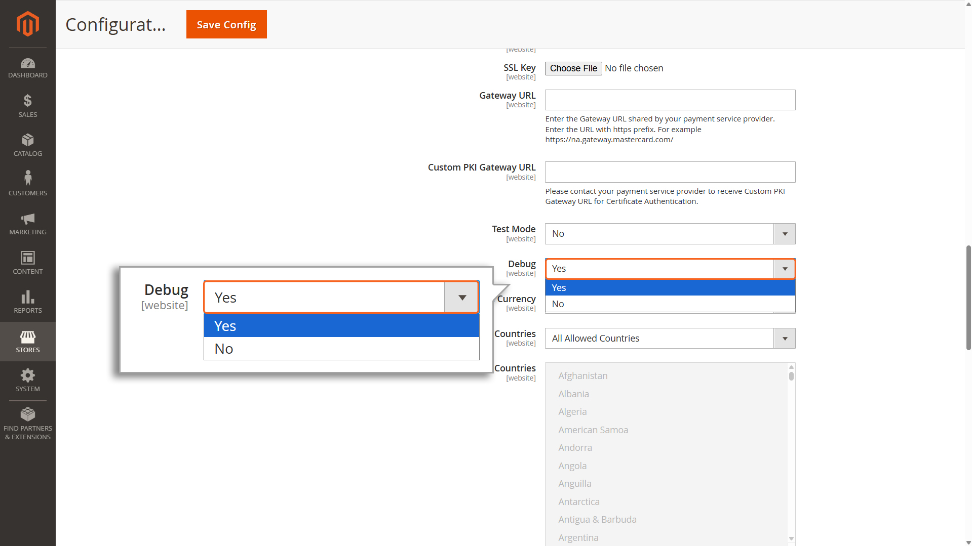 Enable Debug by selecting Yes if you’re testing in Test Mode. Debugging creates detailed logs that can help you identify and fix any issues with your payment process.