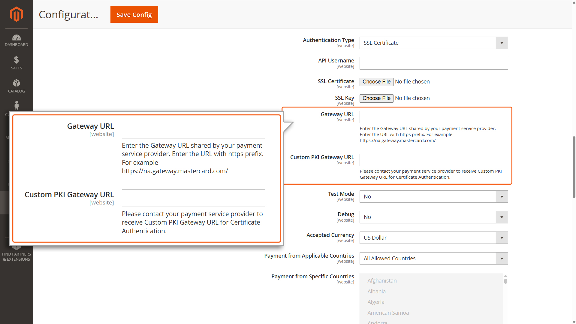 Enter the Gateway URL shared by your payment service provider. Enter the URL with https prefix. For example https://na.gateway.mastercard.com/