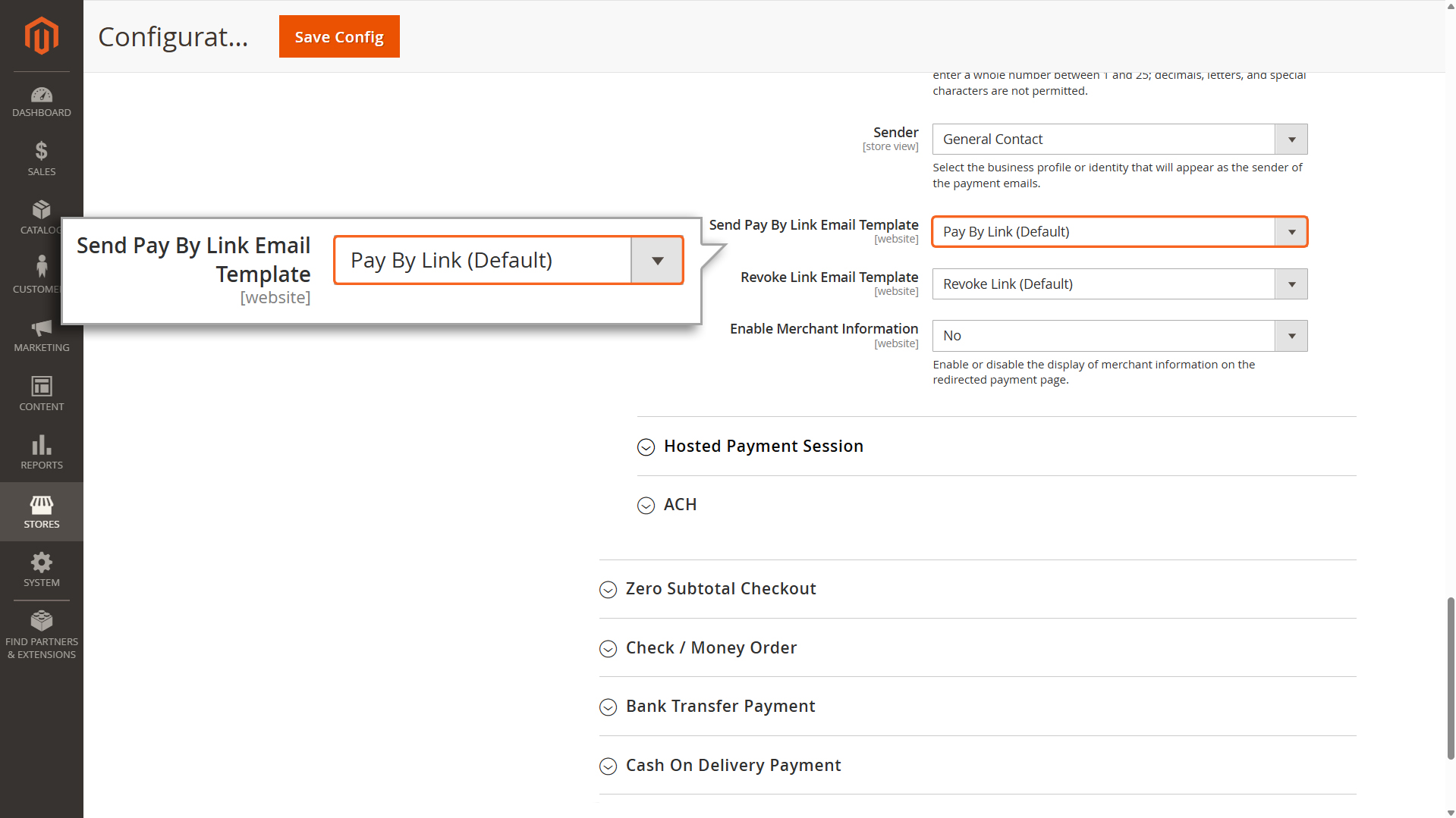 Send Pay By Link Email Template : Choose the pre-formatted email layout used when sending the initial payment request to the customer. The default template is pre-selected.