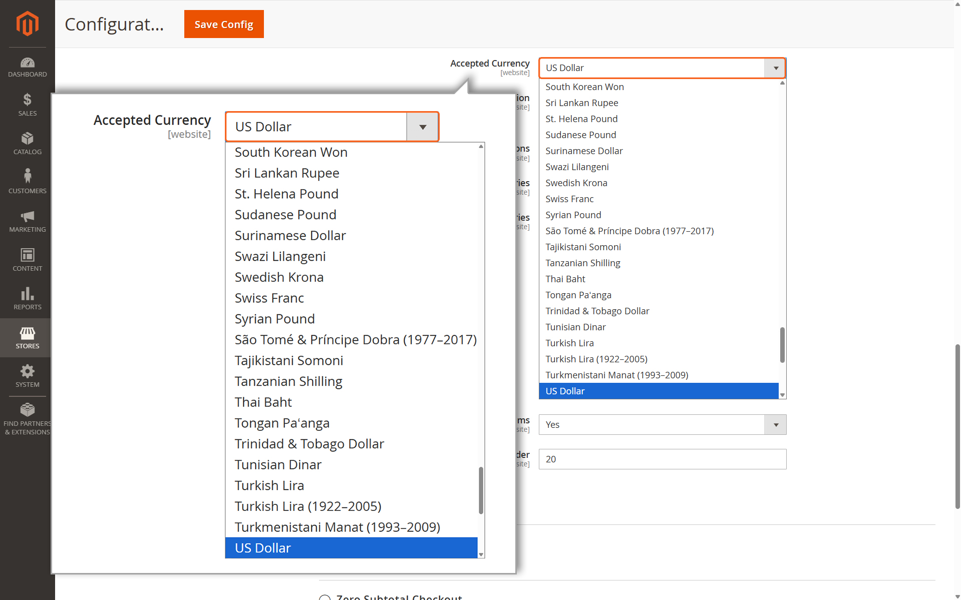 Choose the currency you want to use as the base for your store. This determines the default currency for transactions.