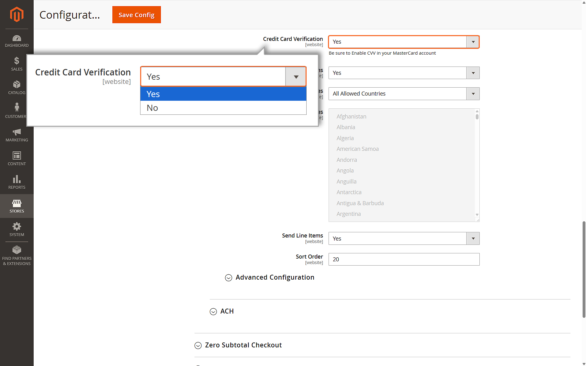 - Set this to Yes if you want to require card verification for Hosted Payment Sessions.