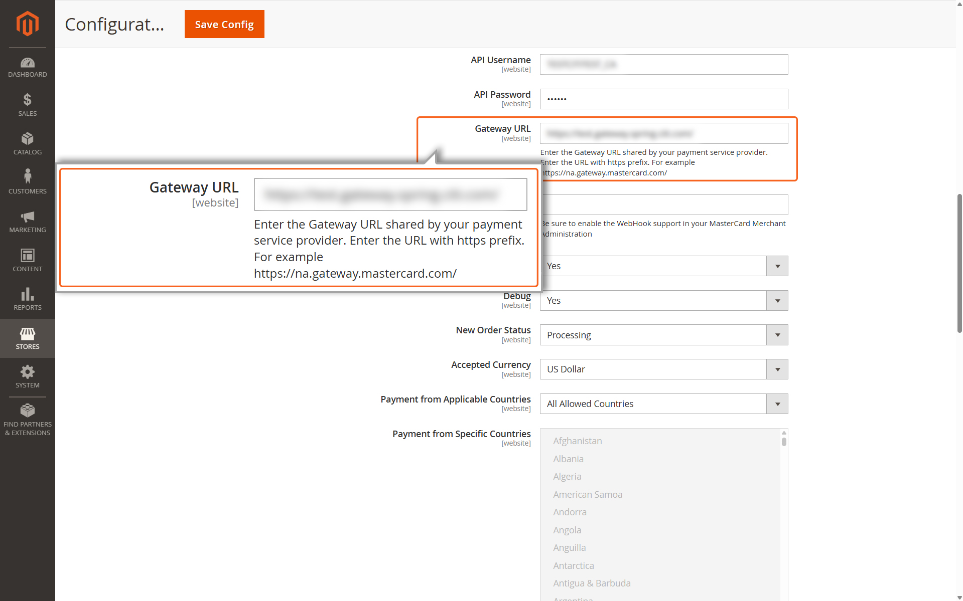 Enter the Gateway URL shared by your payment service provider. Enter the URL with https prefix. For example https://na.gateway.mastercard.com/