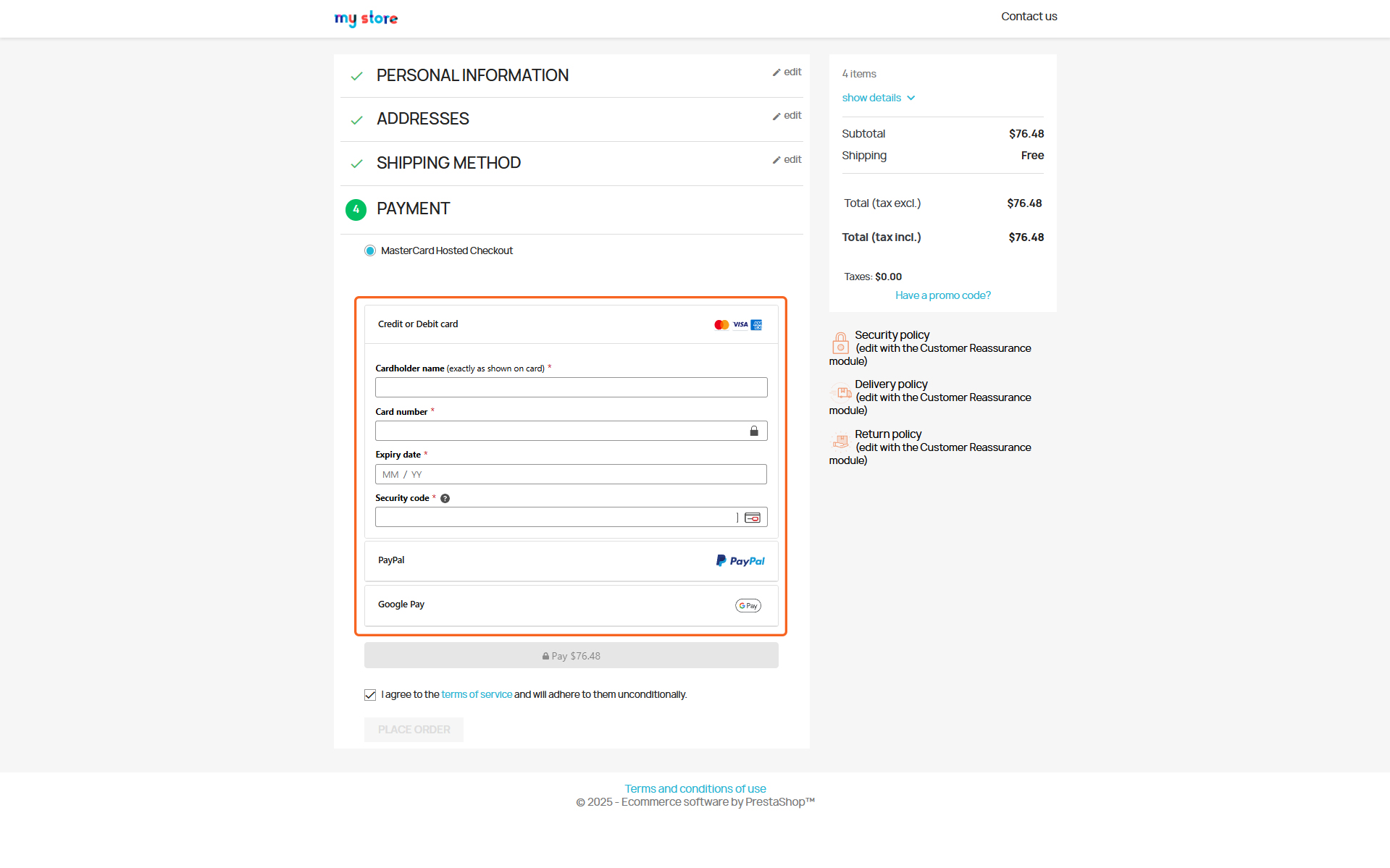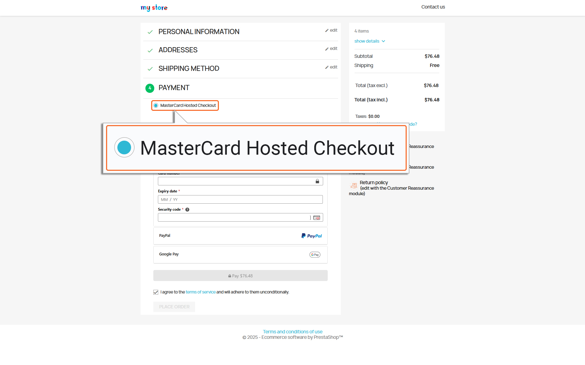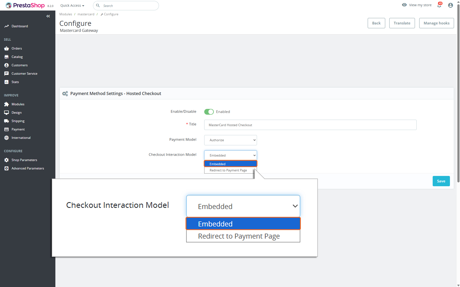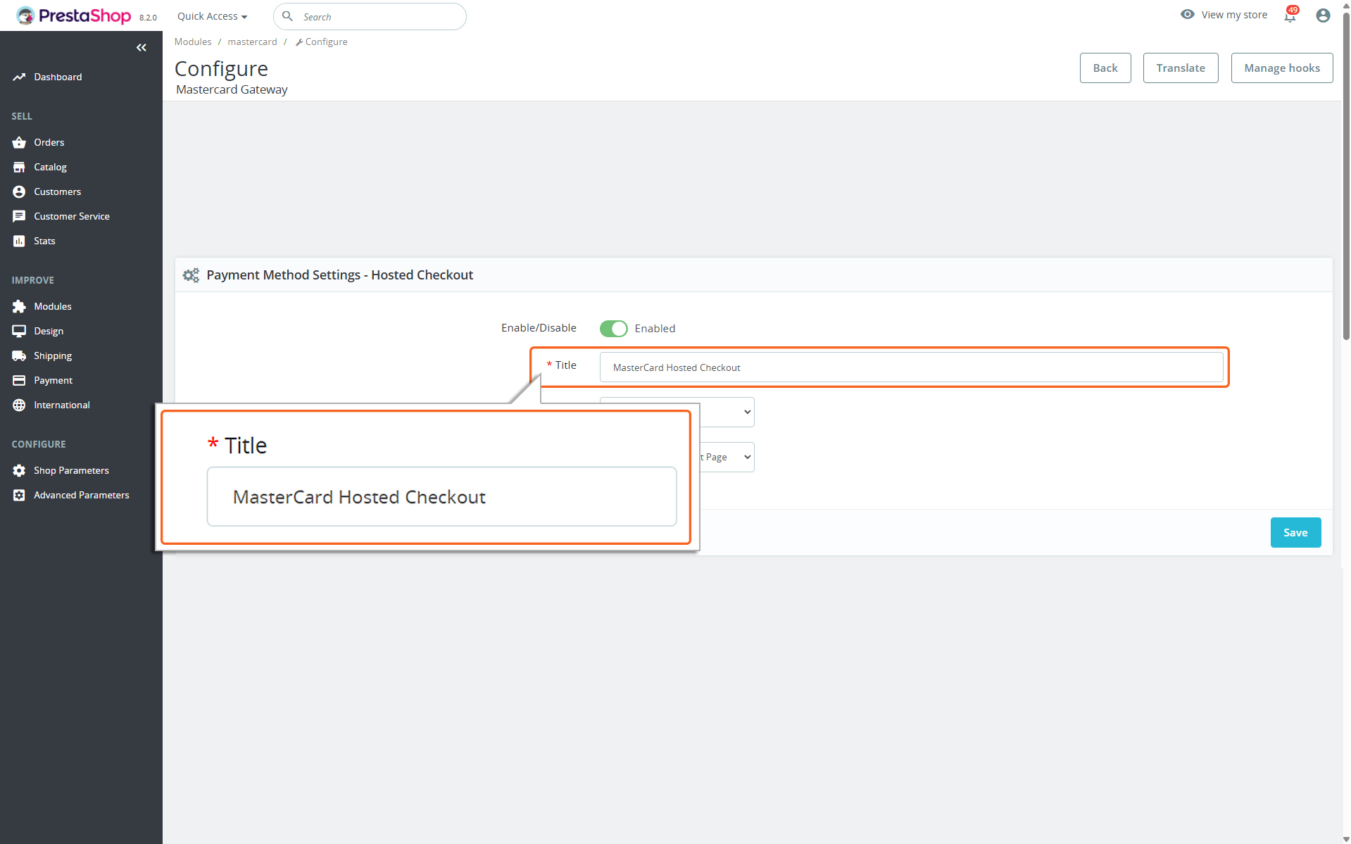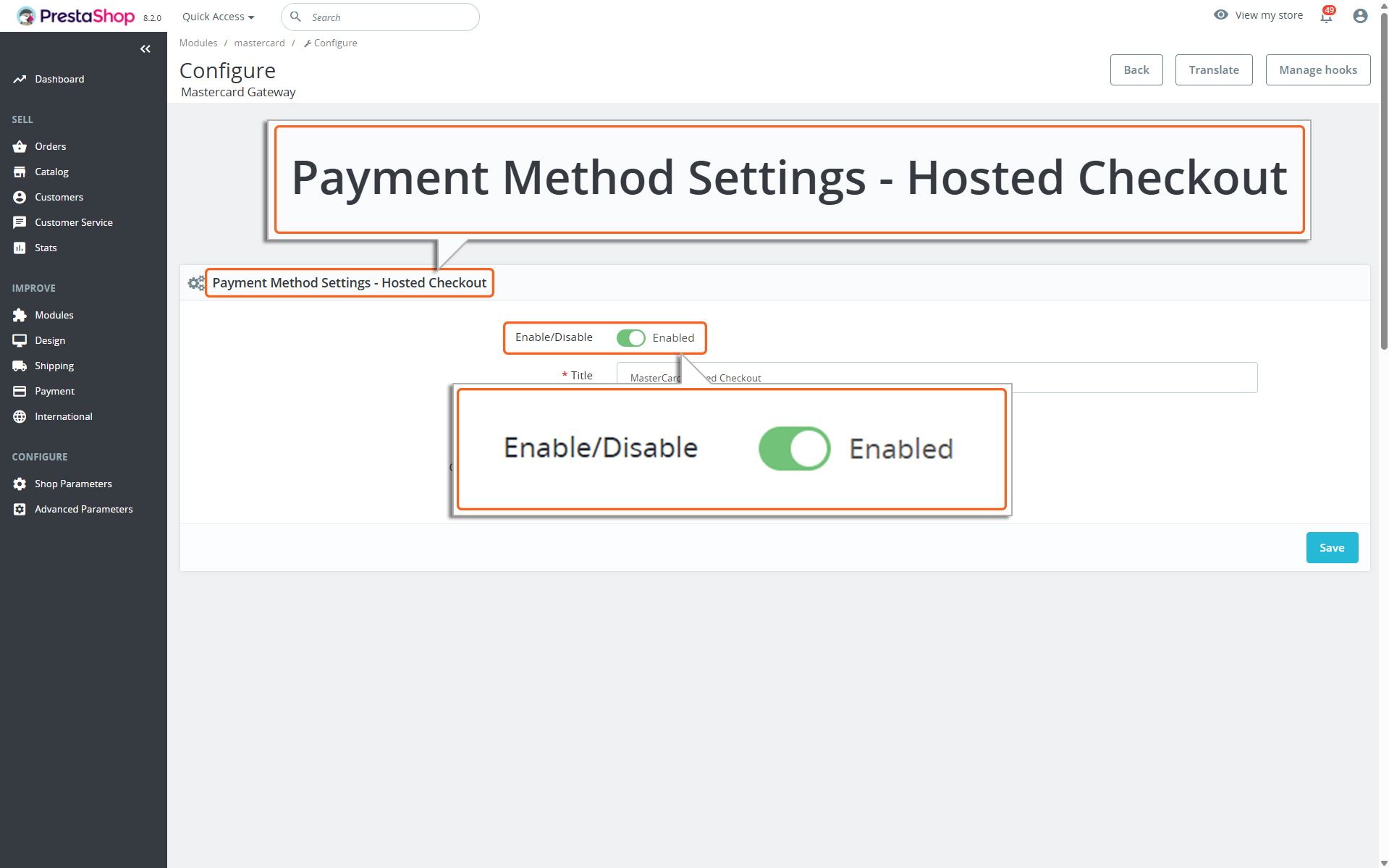 Toggle this button to enable Mastercard Gateway to be used as your PrestaShop payment method. This step activates the configuration needed for this payment option as well as enabling the same in the checkout page.