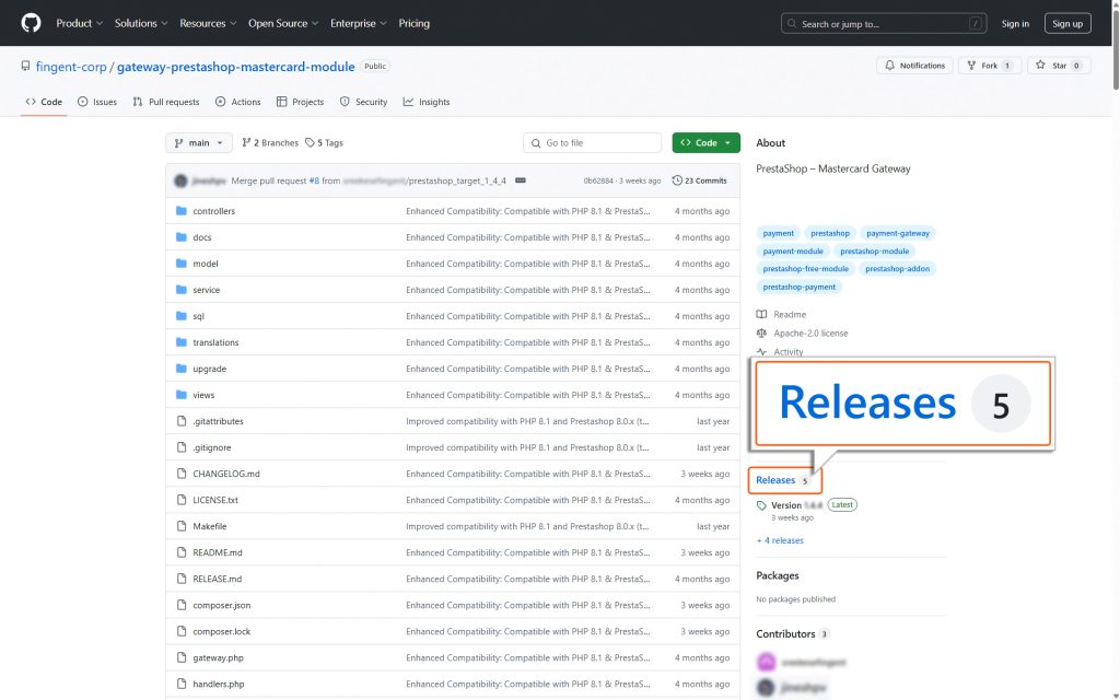 Once the release page is opened, click on ‘prestashop-mastercard.zip’ file against the respective release version you intend to download, it will download the file to your system.
